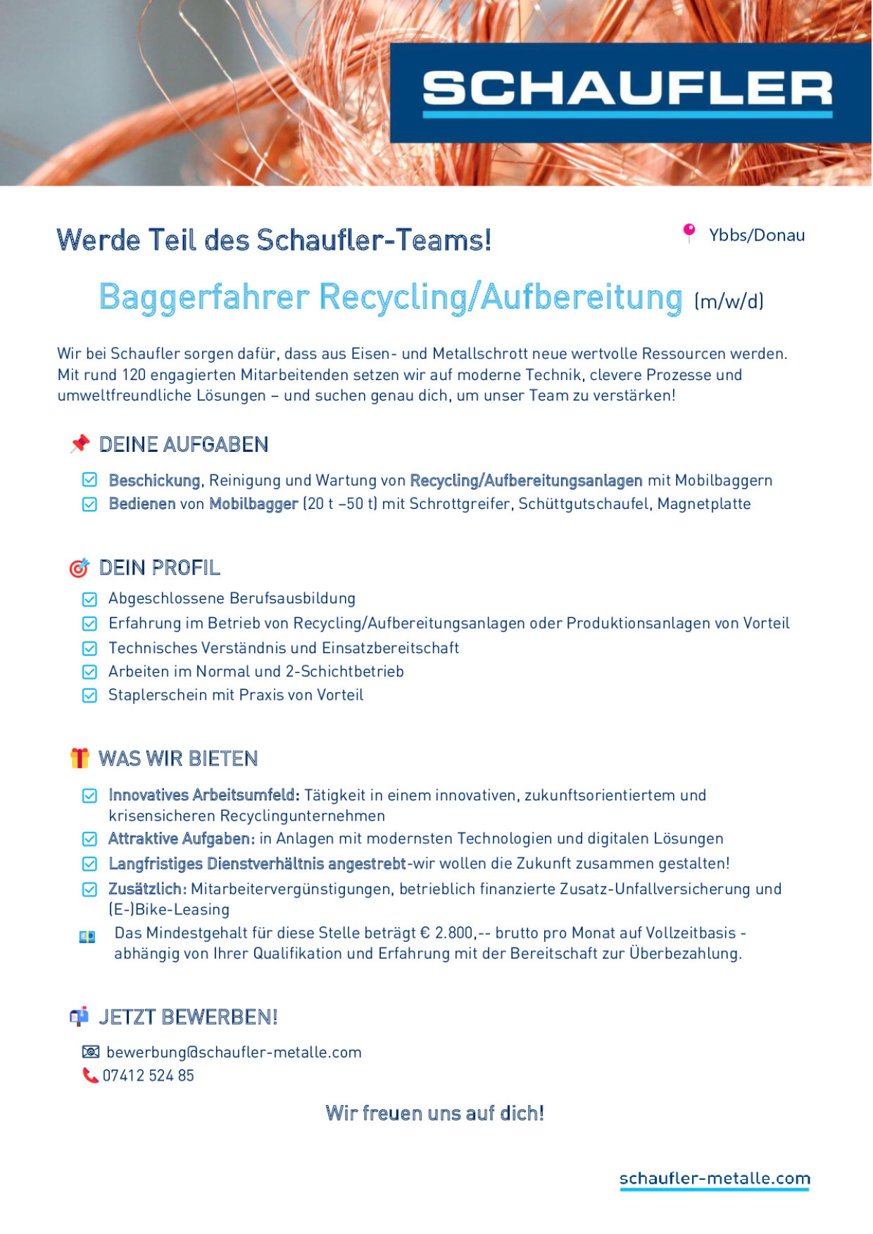 Baggerfahrer Recycling/Aufbereitung (m/w/d)