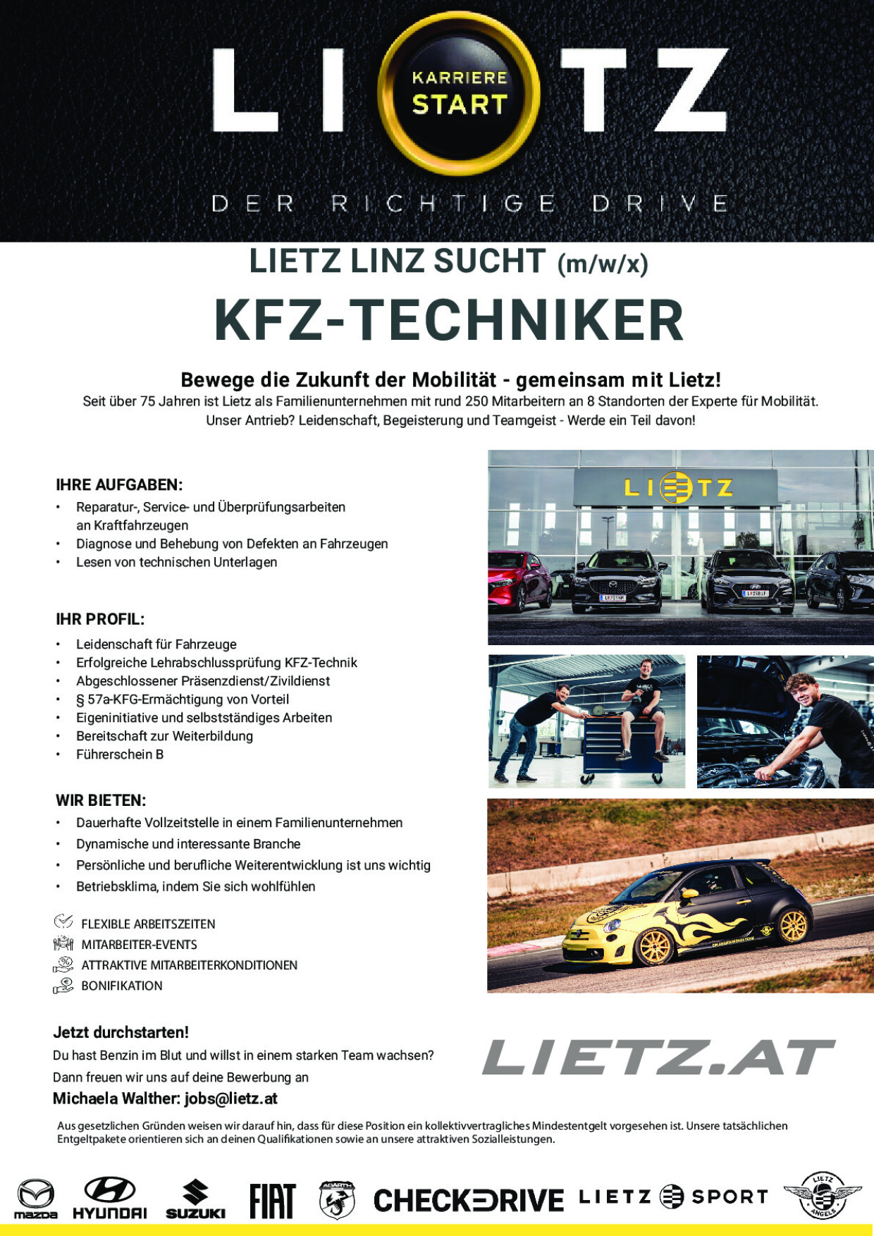 Egal ob vier Räder oder zwei - wir haben Spaß daran, uns täglich mit Mobilität zu beschäftigen und unsere Kundinnen und Kunden positiv zu überraschen. Wir sind ein Familienunternehmen und Verstehen auch unser gesamtes LIETZ Team als große Familie, bei der jede MitarbeiterIn und jeder Lehrling einen wichtigen Beitrag leistet.