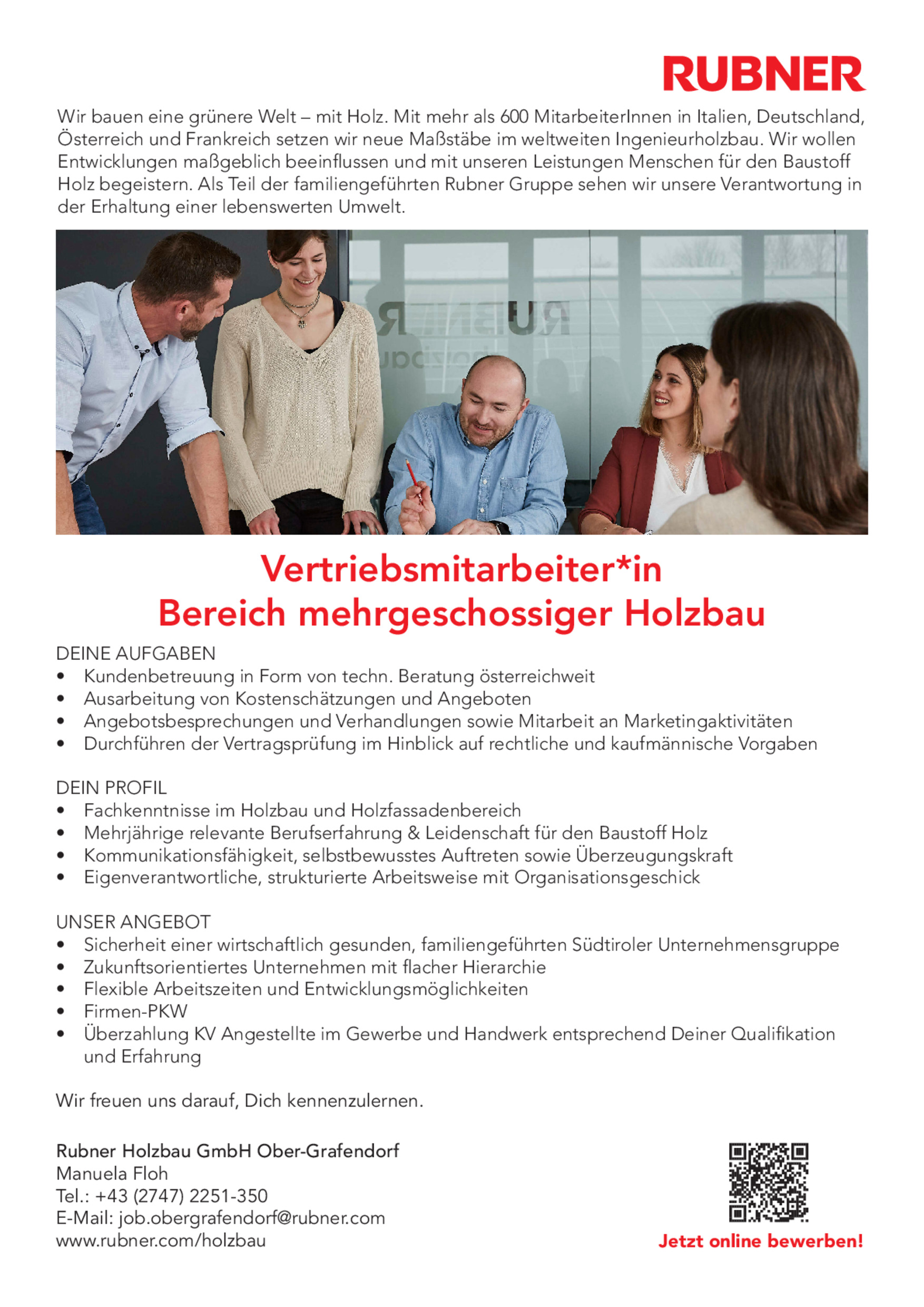 Vertriebsmitarbeiter*in Bereich mehrgeschossiger Holzbau