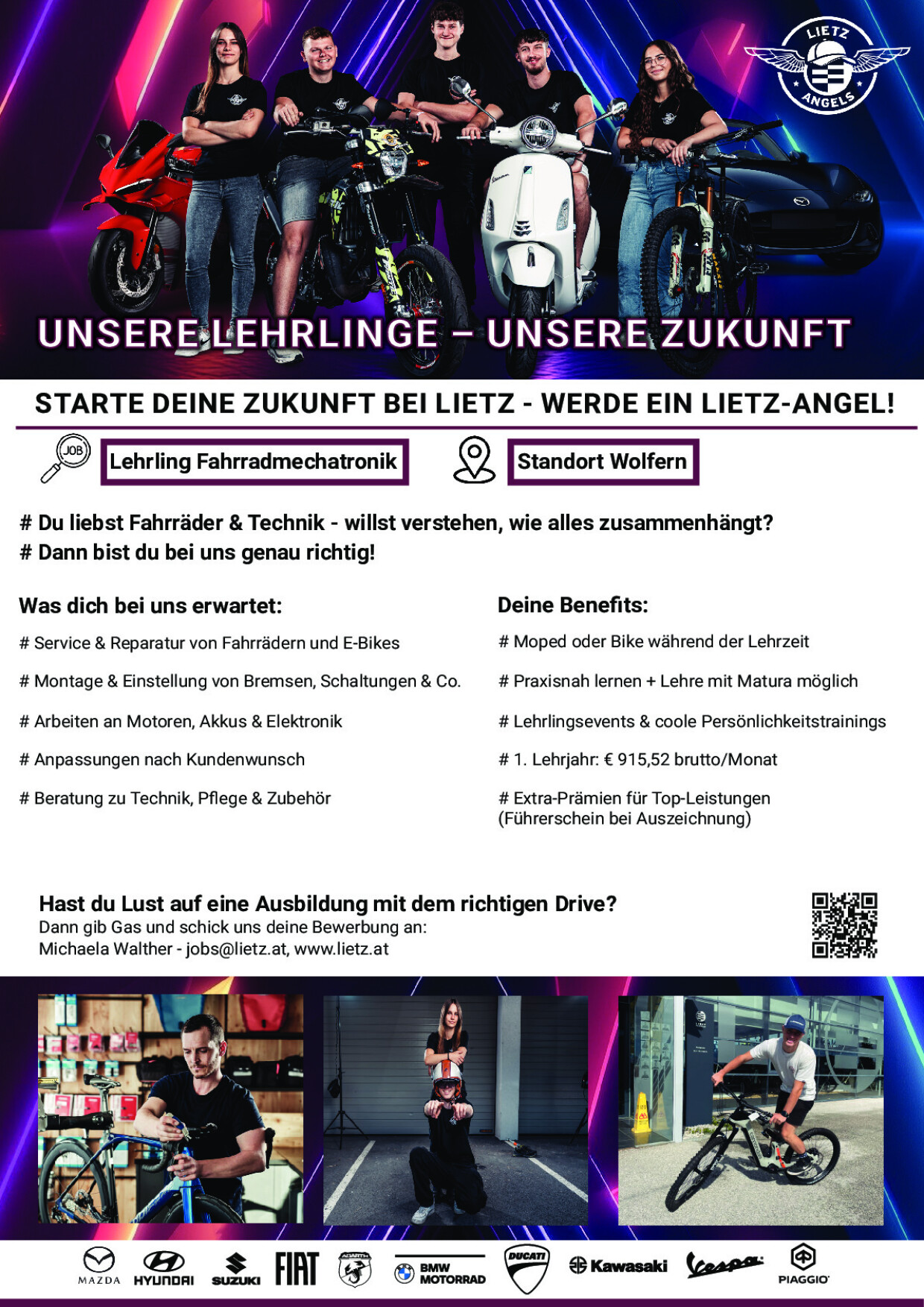 Das Unternehmen Lietz - mit seinen mittlerweile neun Standorten - gilt heute als markenübergreifender Spezialist für moderne Mobilität. Mit einer Produktpalette von Fahrrädern über Motorräder bis hin zu Pkw und Nutzfahrzeugen können nahezu alle Mobilitätsbedürfnisse abgedeckt werden.