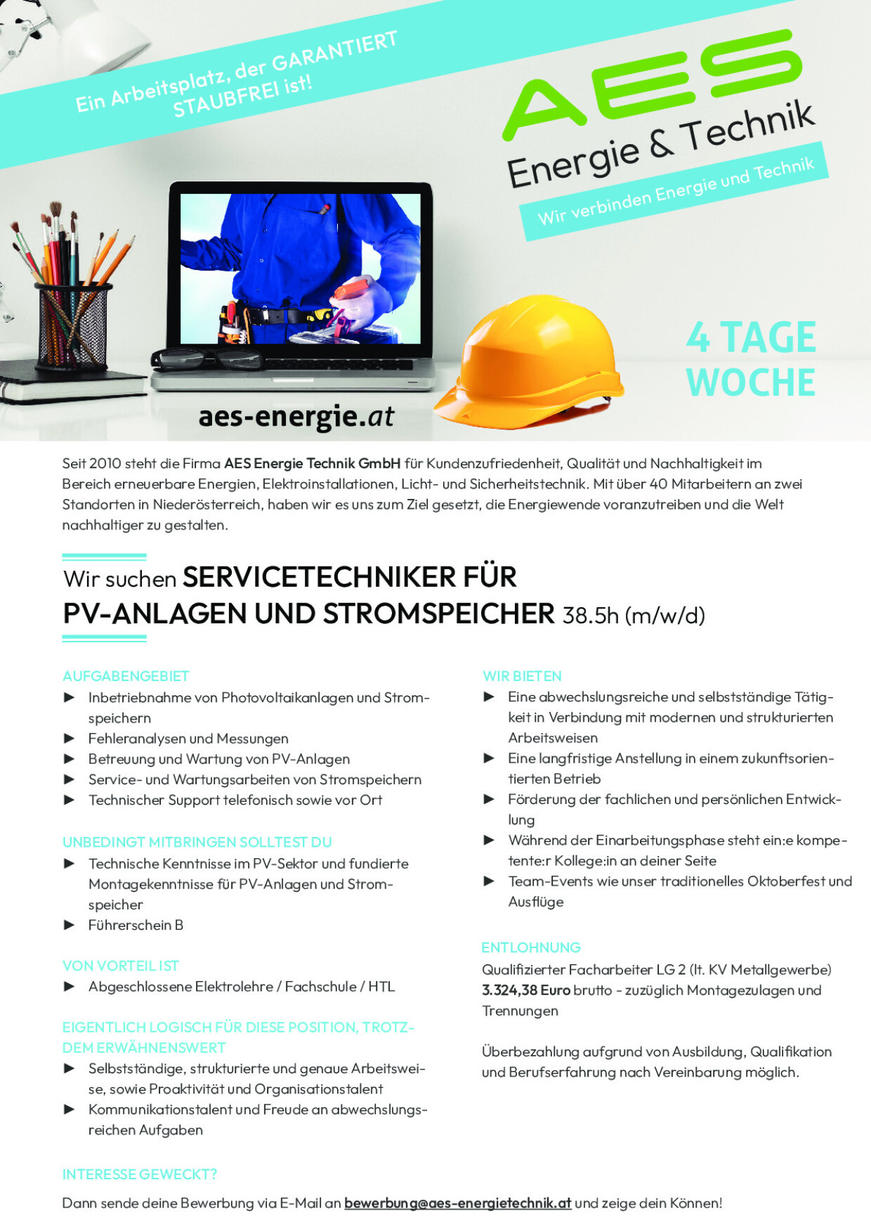 Qualifizierter Facharbeiter LG 2 (lt. KV Metallgewerbe) 3.324,38 Euro brutto – zuzüglich Montagezulagen und Trennungen