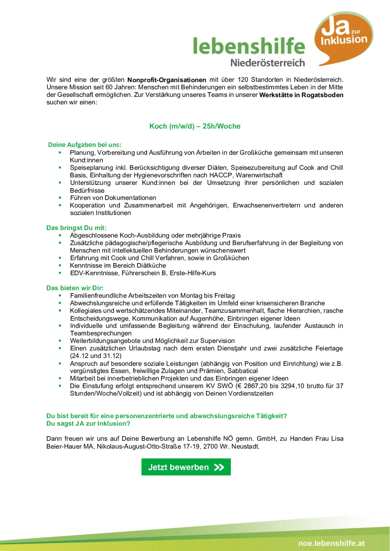 Koch (m/w/d) Werkstätte Rogatsboden