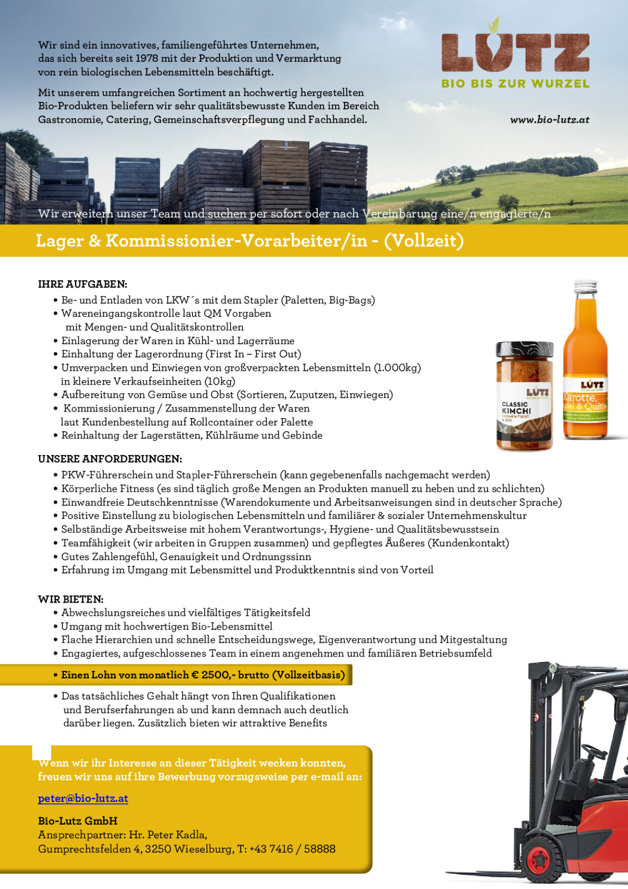 Lager & Kommissionier-Vorarbeiter/in - (Vollzeit)
