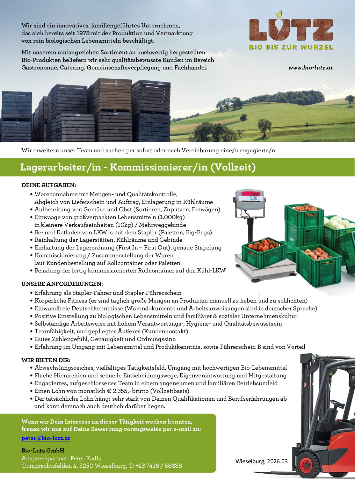 Lagerarbeiter/in - Kommissionierer/in (Vollzeit)