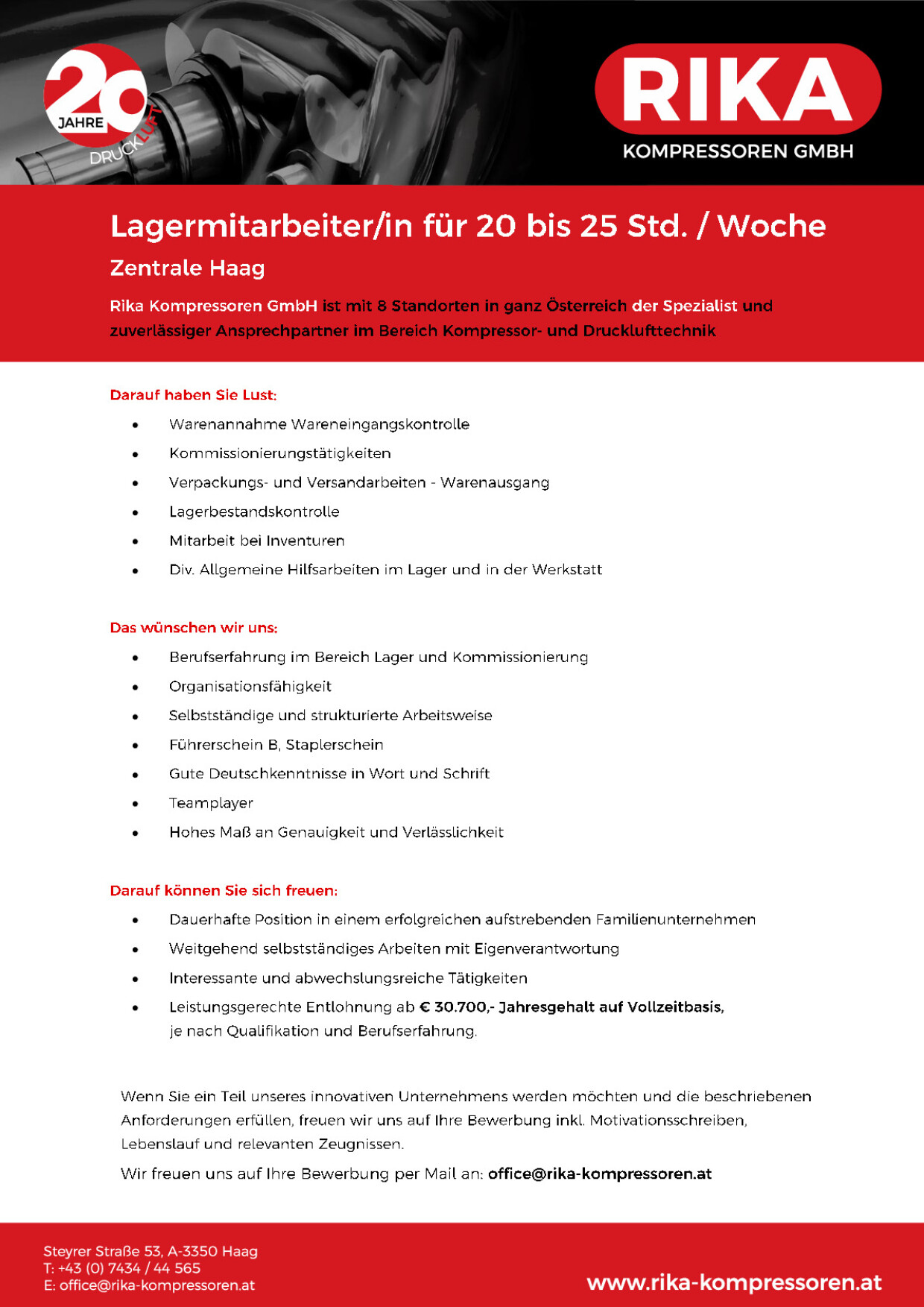 für die Zentrale Haag - 20 bis 25 Std. / Woche