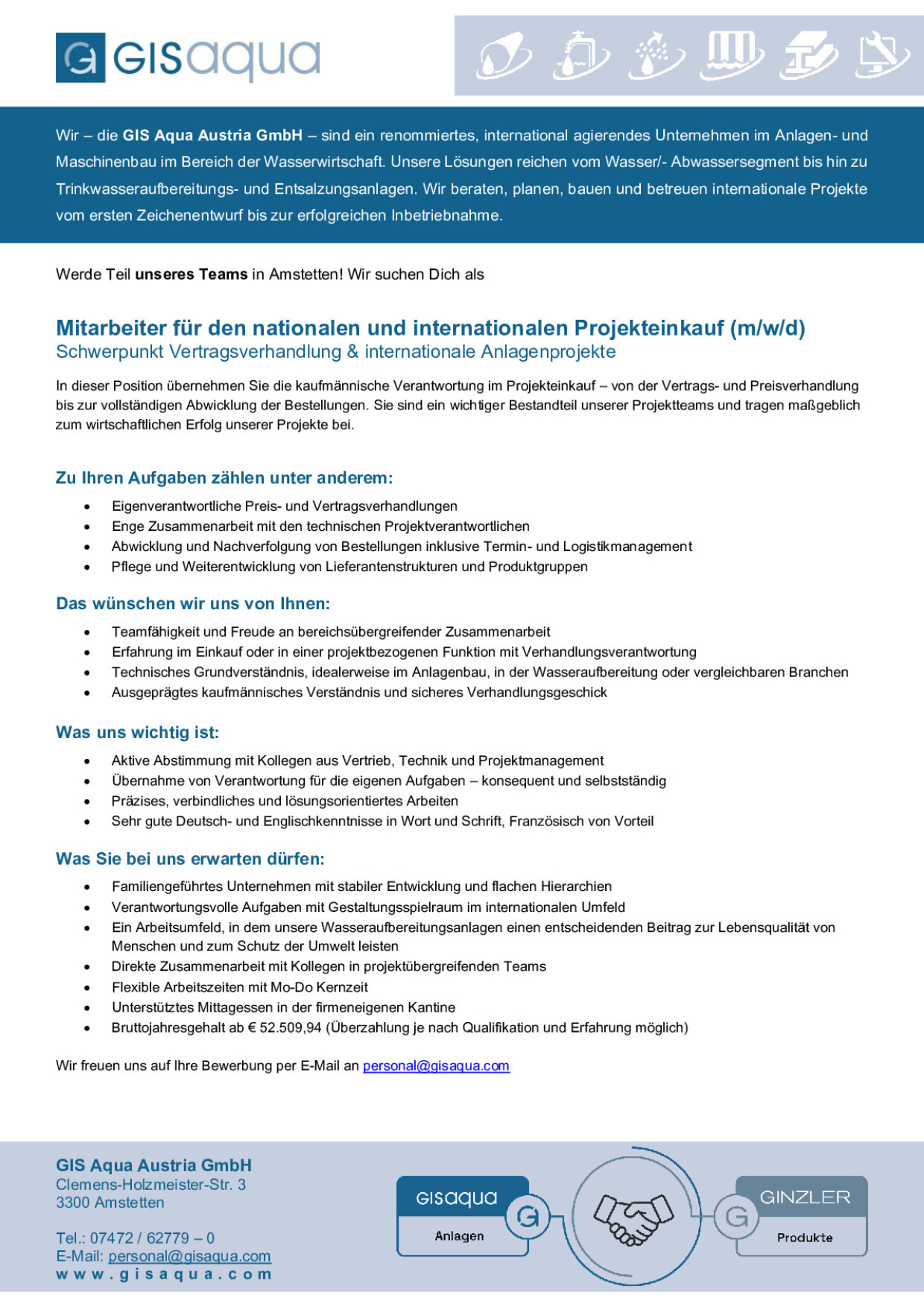 Bruttojahresgehalt ab € 52.509,94 (Überzahlung je nach Qualifikation und Erfahrung möglich)