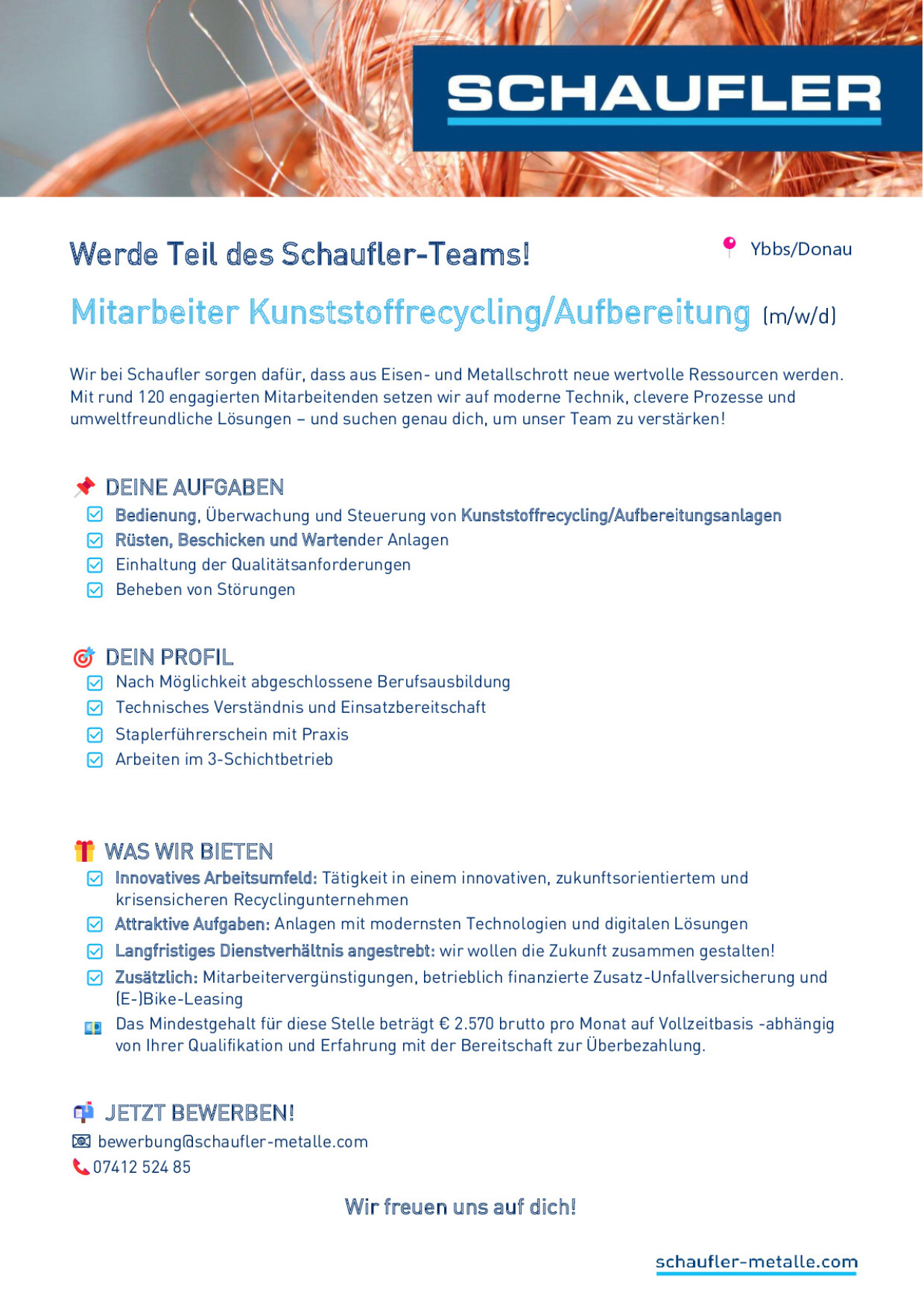 Mitarbeiter Kunststoffrecycling/Aufbereitung (m/w/d)