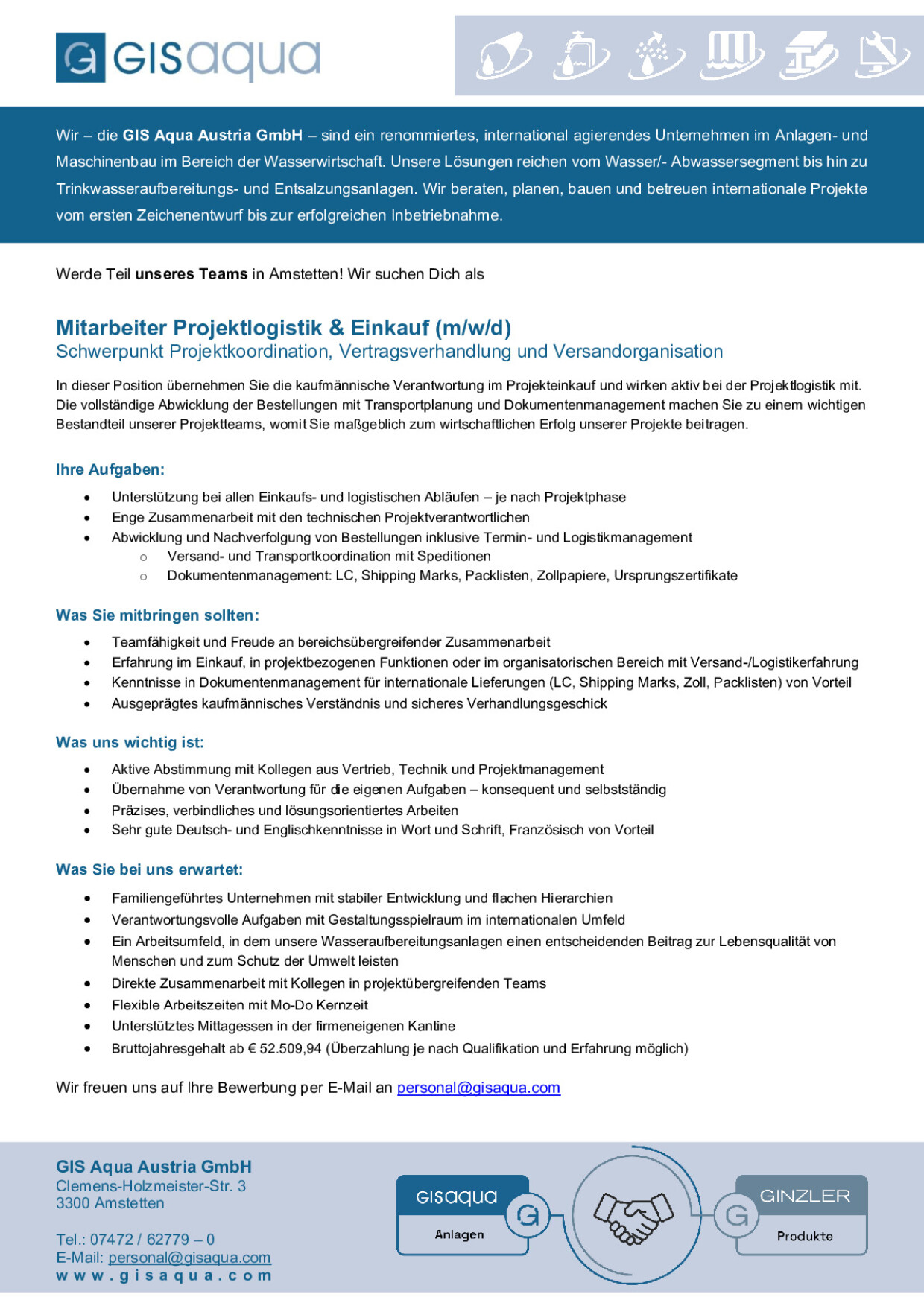 Mitarbeiter Projektlogistik & Einkauf (m/w/d)