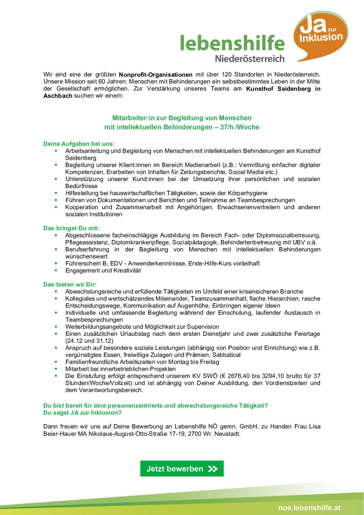 zur Begleitung von Menschen mit intellektueller Behinderung 20h/Woche