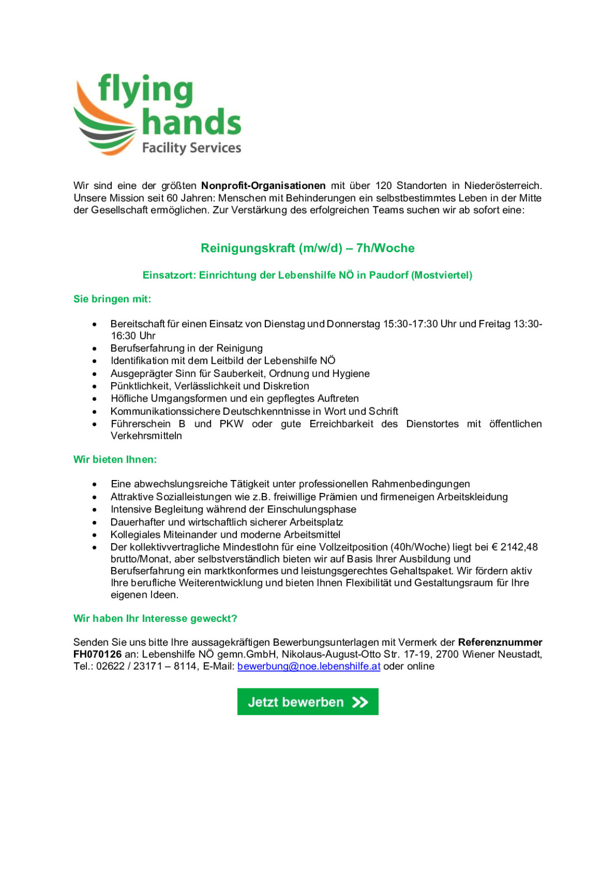 Reinigungskraft (m/w/d) für unsere Einrichtung in Paudorf